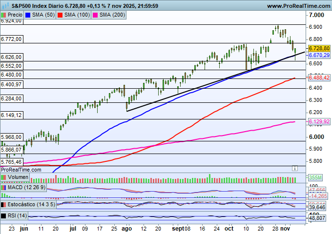 Es muy probable que hoy se intente atacar la resistencia de los 6.770 puntos y, por encima de ahí, buscar un nuevo intento hacia los 6.900 puntos. El SP-500 probablemente mejore esta tarde su aspecto técnico de corto plazo, lo que permitirá únicamente deshacerse de posiciones compradoras existentes.